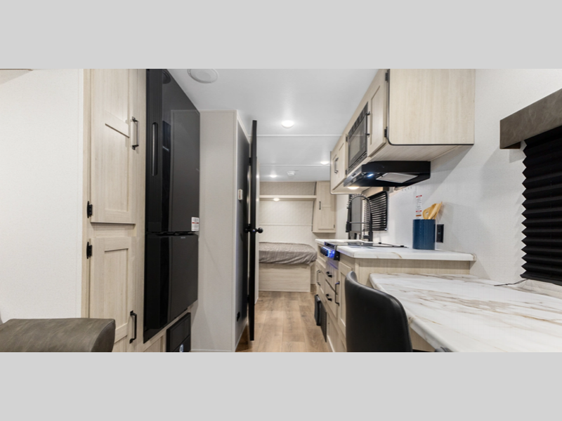 Sleeps 3 Slides 1 Length 26 ft 7 in Ext Width 8 ft Ext Height 10 ft 11 in Hitch Weight 720 lbs GVWR 6488 lbs Dry Weight 4988 lbs Cargo Capacity 1500 lbs Fresh Water Capacity 43 gals Grey Water Capacity 65 gals Black Water Capacity 35 gals Available Beds RV Queen Refrigerator Type Black Glass 12V Cooktop Burners 3 Shower Size 36" x 30" Number of Awnings 1 LP Tank Capacity 30 lbs Water Heater Capacity 6 gal AC BTU 13500 btu Axle Count 2 Shower Type Standard Similar Floorplans